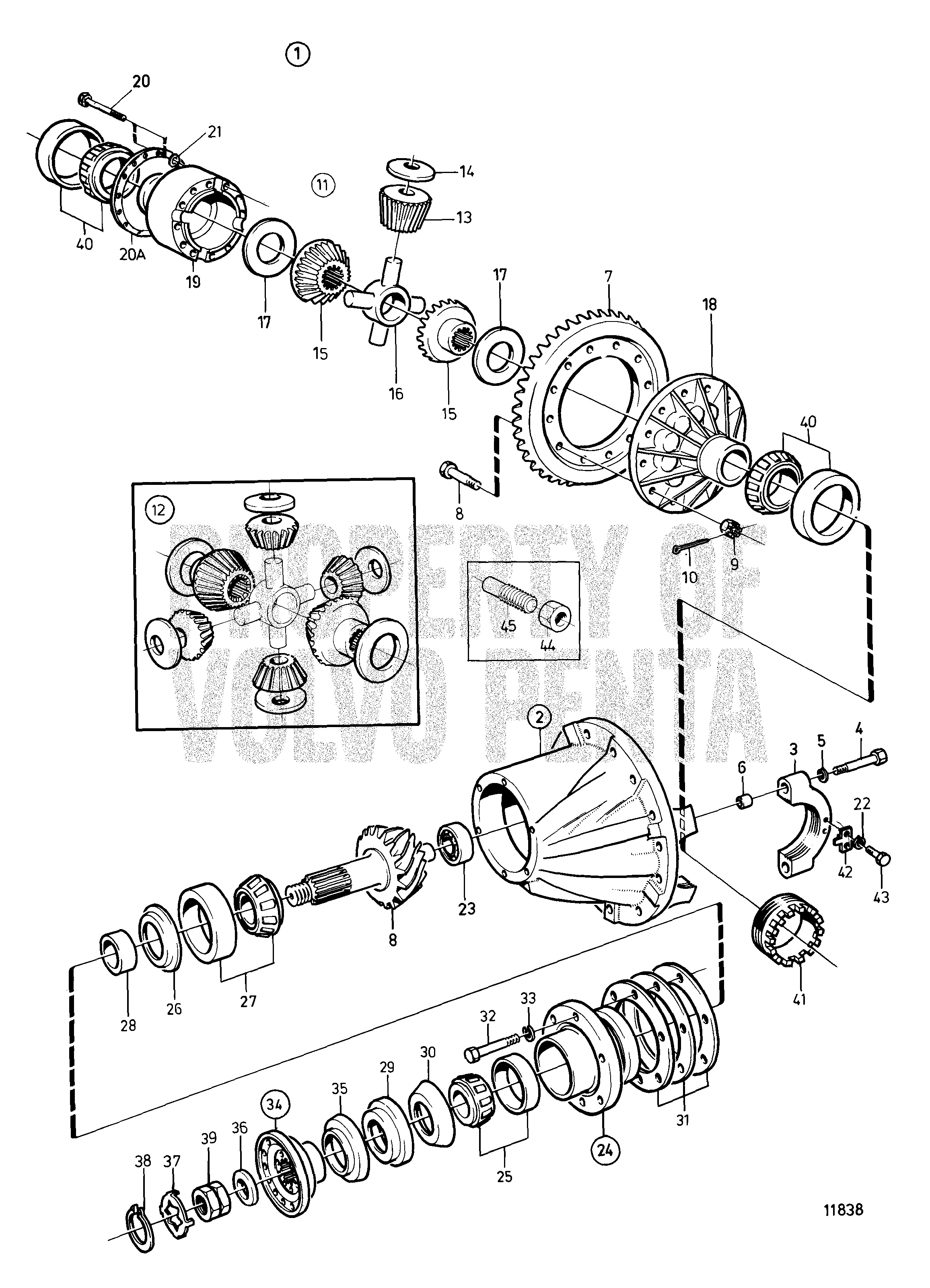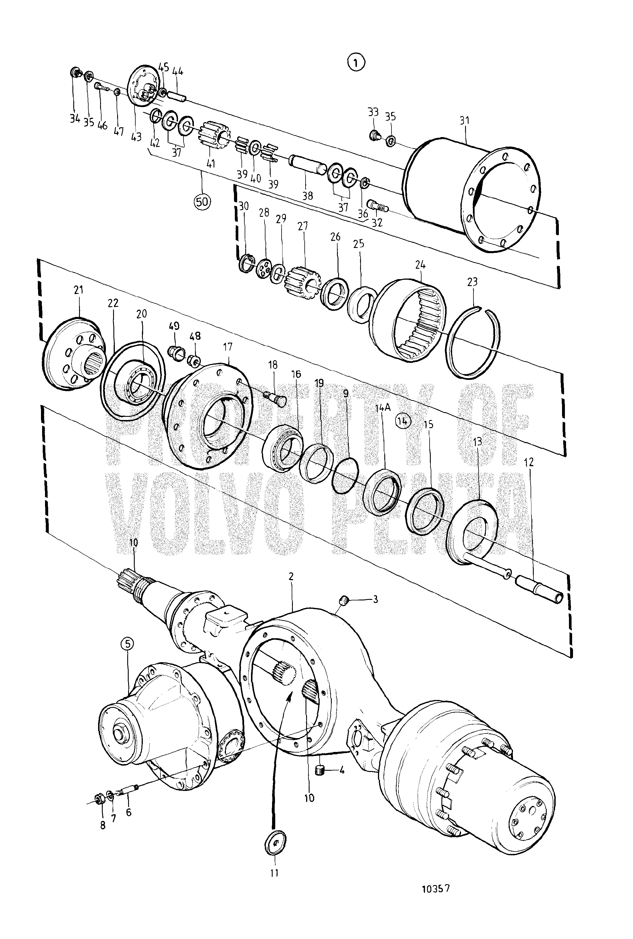 Grupo cónico y EV80B. Racor de cuatro puntos. Dirección del eje trasero